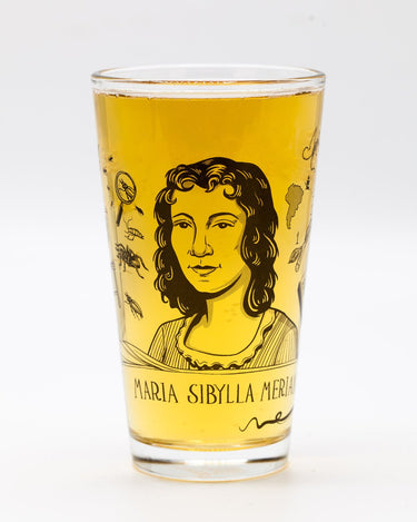 Celebrate the groundbreaking work of Maria Sibylla Merian, the 17th-century naturalist and entomologist who forever changed how we see insects and botanical life, with this beautifully etched pint glass. Featuring her exquisite illustrations of butterflies, caterpillars, and lush foliage, this 16-oz glass turns every drink into a toast to science, artistry, and curiosity.