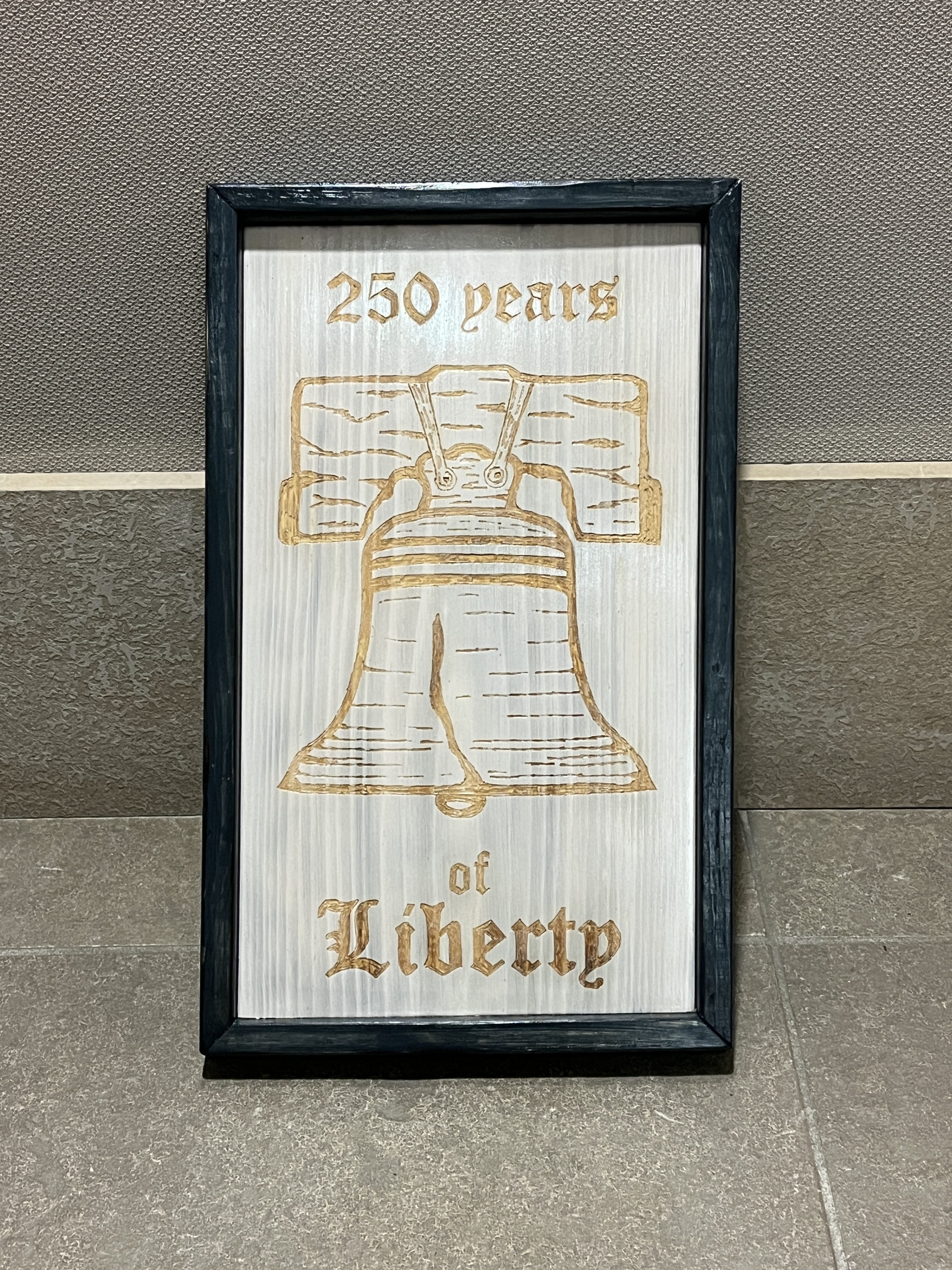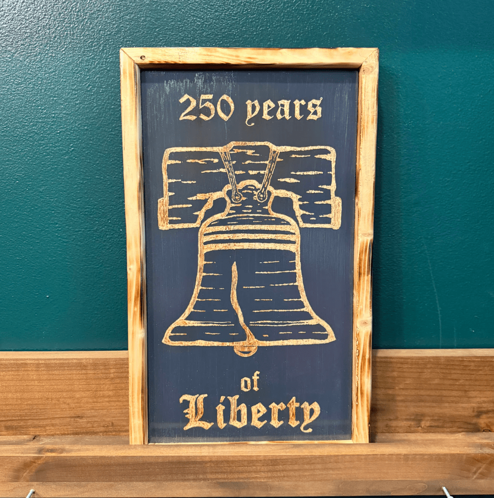 Commemorate the semiquincentennial with this striking "250 Years of Liberty" shadowbox featuring the Liberty Bell – hand carved and hand painted in Pennsylvania by Emerald Flags!