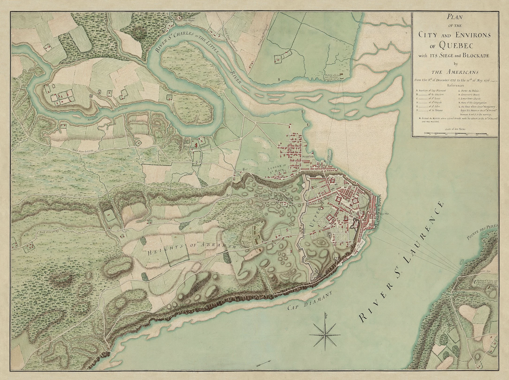 Full-color cloth reproduction of Quebec City and its surroundings, 1775–1776