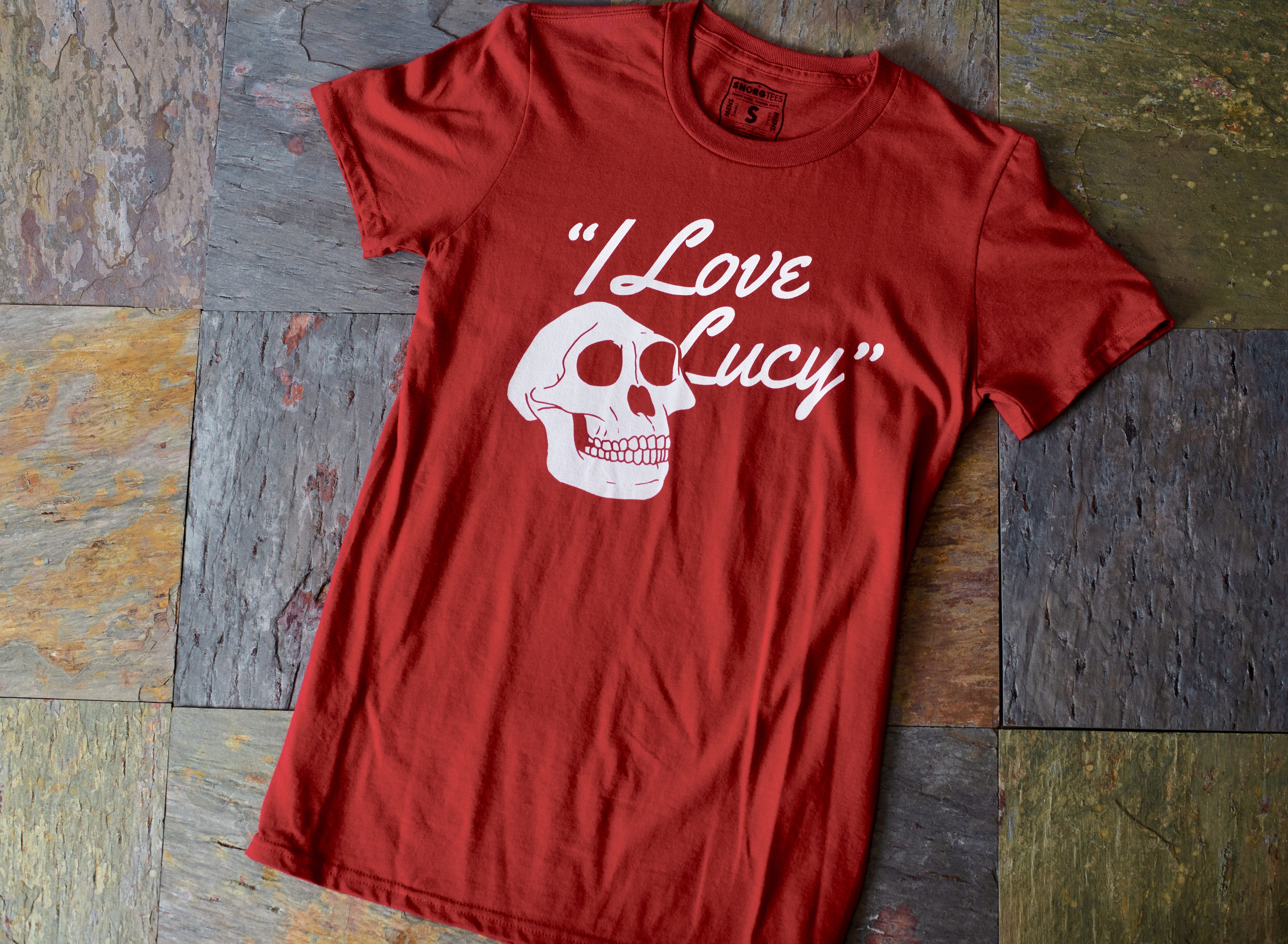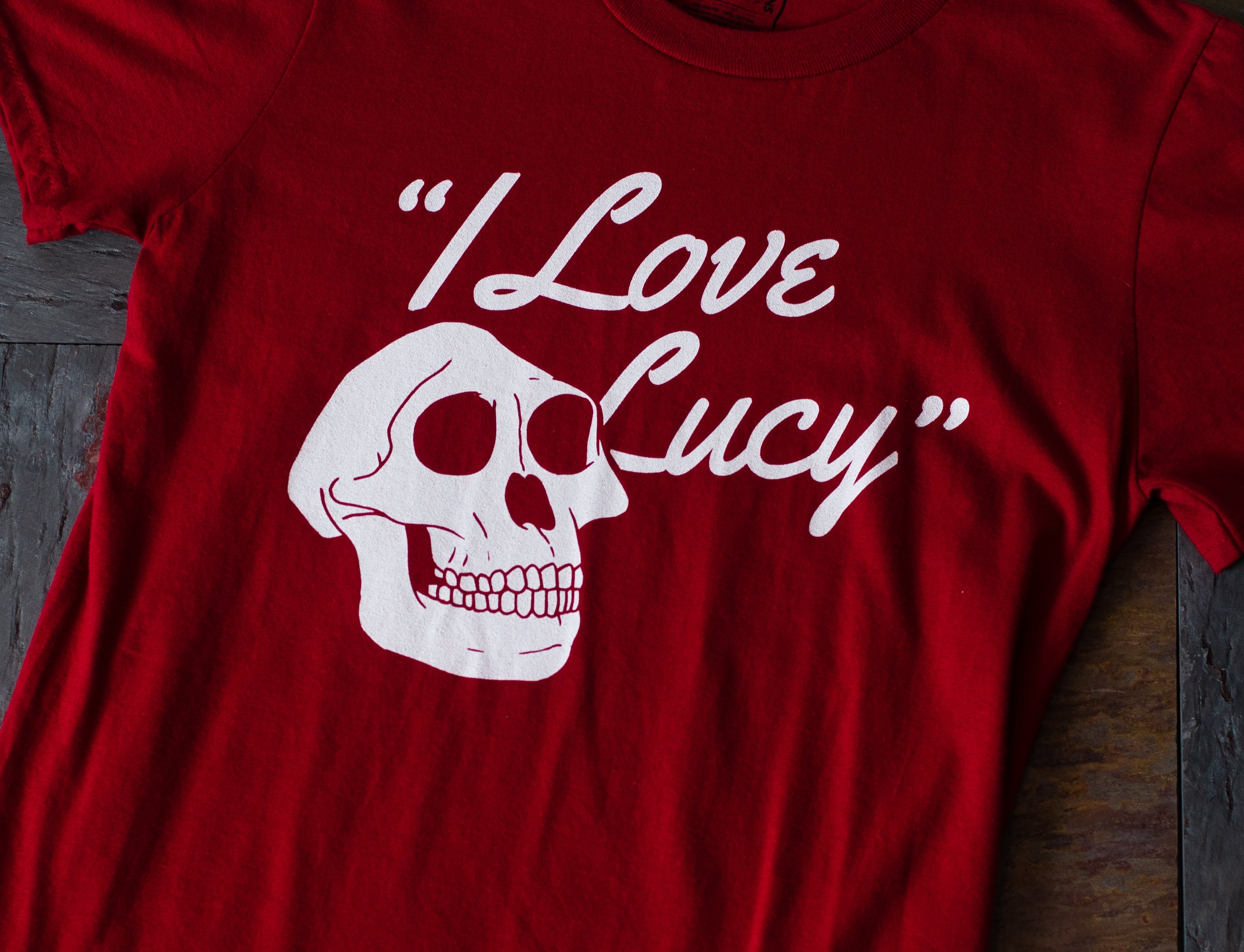 Celebrate science, history, and a clever play on words with this bold red tee. Featuring a skull graphic and the phrase “I Love Lucy”, this shirt pays tribute to Lucy (AL 288-1)—the famous 3.2-million-year-old Australopithecus afarensis fossil discovered in Ethiopia in 1974.