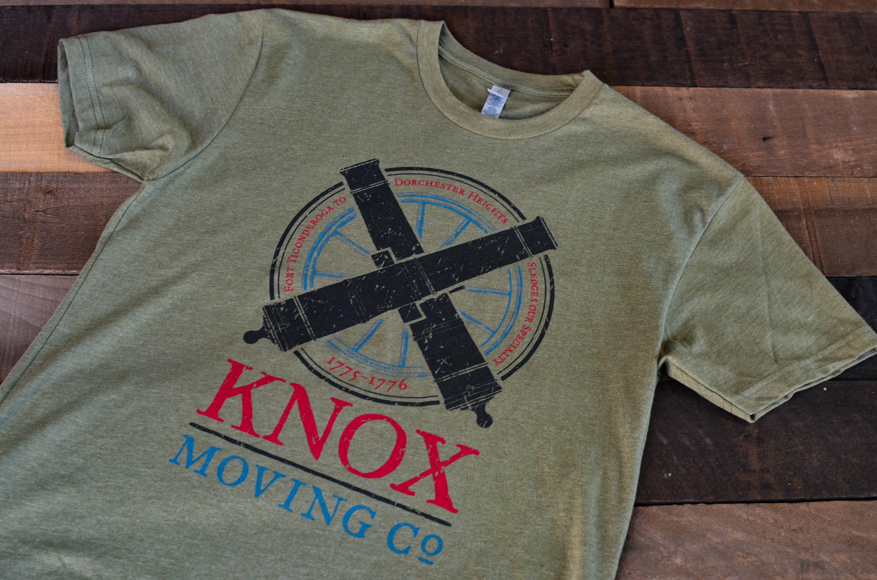 Celebrate one of the boldest feats of the American Revolution with the Knox Moving Co. T-Shirt. This exclusive design honors General Henry Knox and his legendary “Noble Train of Artillery,” when he hauled 120,000 pounds of captured British cannons over 300 miles of snow and ice from Fort Ticonderoga to Boston in the winter of 1775–76. His determination helped turn the tide of the war, forcing the British to evacuate Boston and securing an early American victory.