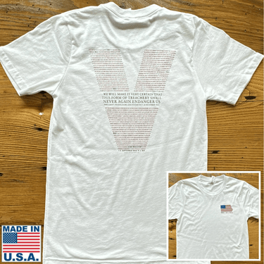 - 100% cotton Made in the USA shirt in your choice of two colors: White and Dark tan — Knitted, dyed, and sewn in the USA. 4.4 oz. S - 3X.