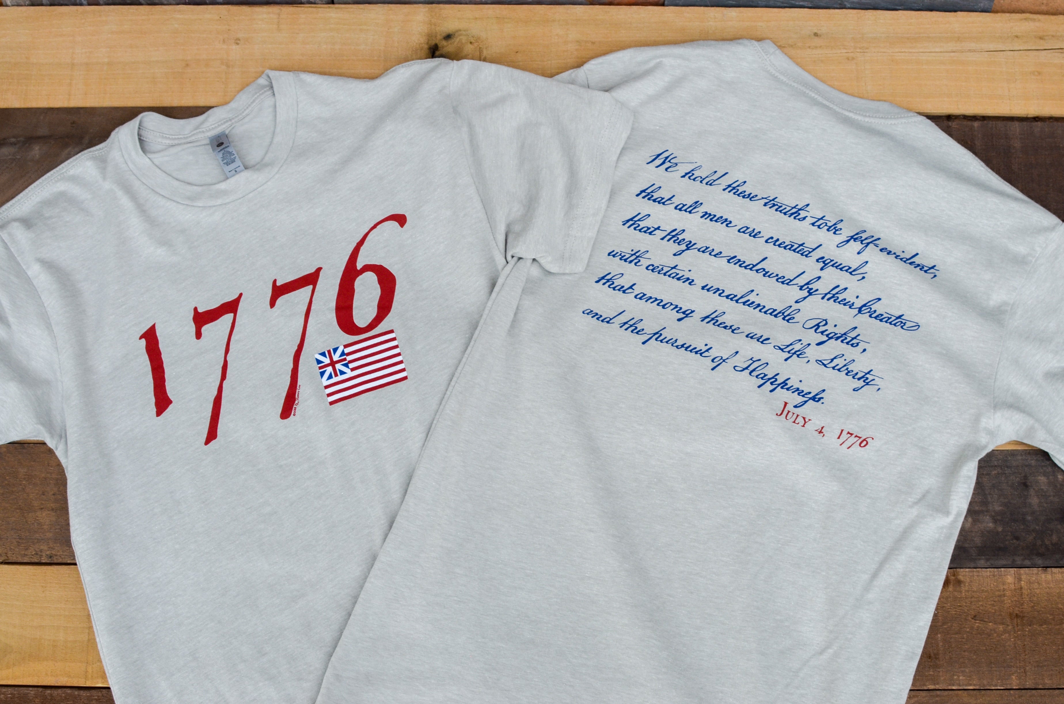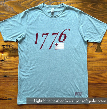 Crafted from our premium 4.3 oz. poly-cotton blend, this tee is lightweight, soft, and incredibly comfortable—perfect for everyday wear, patriotic holidays, or visits to historic sites. Available in Light Blue Heather or Silver Gray, the shirt combines timeless style with a subtle nod to America’s revolutionary past.