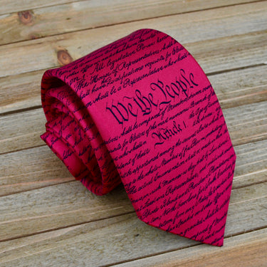 Elevate your style while honoring America’s founding ideals with our Constitution Necktie – Red & Black. Crafted from 100% pure silk, this elegant tie proudly features the words of the U.S. Constitution, including the iconic opening “We the People.”