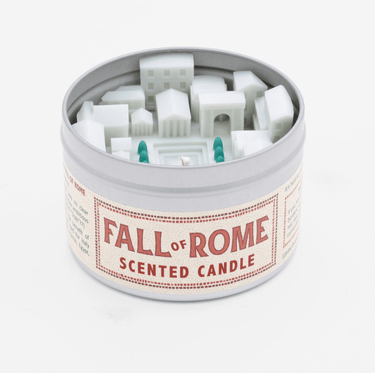 The Fall of Rome-Scented Candle smells like cypress trees and red wine. Light it and watch the Roman forum melt into a puddle of wax while you quietly contemplate the impermanence of civilizations and/or candles.