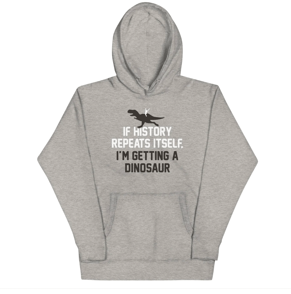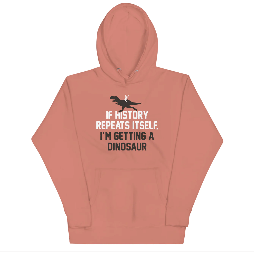 Channel your inner T-Rex and stomp through history in style with our History Repeats Dino Hoodie! Dinosaurs once ruled the Earth roughly 175 million years ago before an extinction event 65 million years ago — but if history repeats itself, you might just get your own comeback.