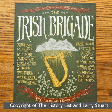 Honor the bravery and sacrifice of the legendary Irish Brigade with this 11” x 14” matte print, a striking tribute to one of the most storied fighting units of the American Civil War. Printed on sturdy 10 pt. cardstock with standard inks, this piece is perfect for framing and displaying in your home, office, classroom, or history collection.