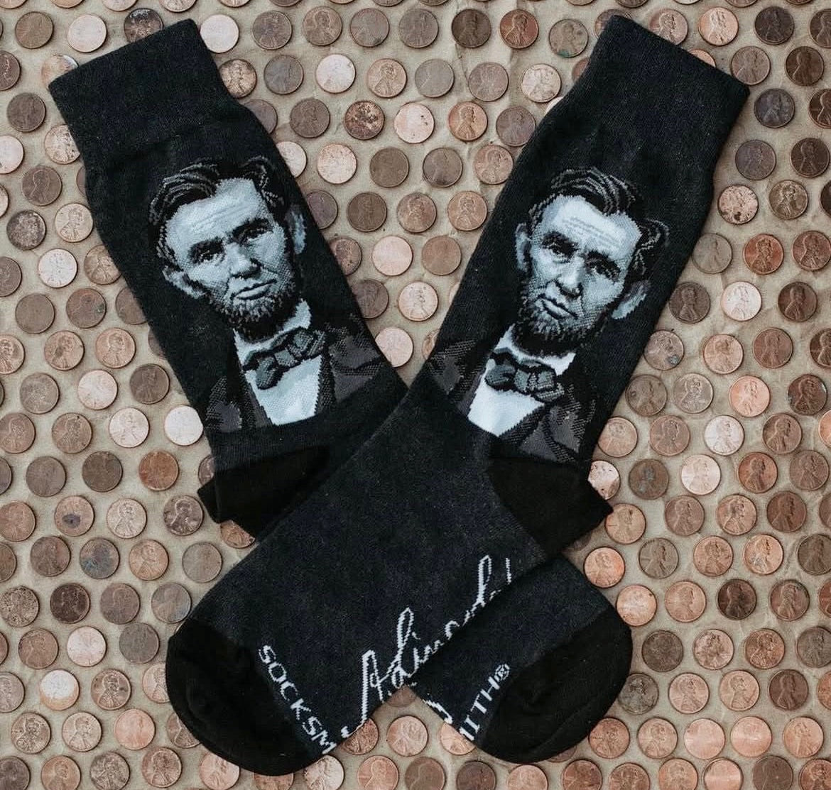 Your feet will be looking stylish for more than four score and seven years with these socks. Let's be honest, in fact, let's be Honest Abe. Do you have a top hat and enjoy recreating Civil War battles? Grab a pair of these Lincoln socks for your next trip to Gettysburg or for that next American History exam and you're sure to feel more in-tune with our 16th president.