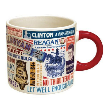 Sip your coffee with a side of history! This vibrant ceramic mug features 29 classic presidential campaign slogans spanning from Adlai Stevenson to Zachary Taylor. Each slogan captures the energy, humor, and political flair of America’s past elections—making it both a fun collectible and a conversation starter.