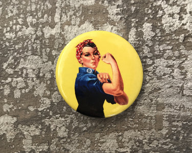 Show your strength and spirit with this Rosie the Riveter Button, featuring the iconic image that inspired millions of women to step up during World War II. This 1.5-inch round pin is perfect for jackets, backpacks, hats, or tote bags—anywhere you want to display a piece of motivational history.