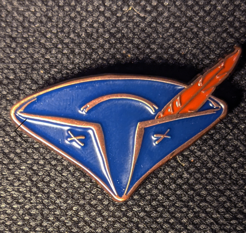 Soft enamel lapel pin shaped like a traditional tricorne hat