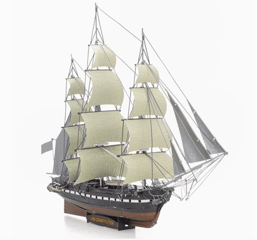 3D Metal Model kit of the USS Constitution World's Fair - The kit starts as flat metal sheets with intricate details etched onto individual pieces. A set of easy-to-follow instructions are included, and No glue or solder is required. Simply snip out the pieces and bend the tabs through corresponding connection points.